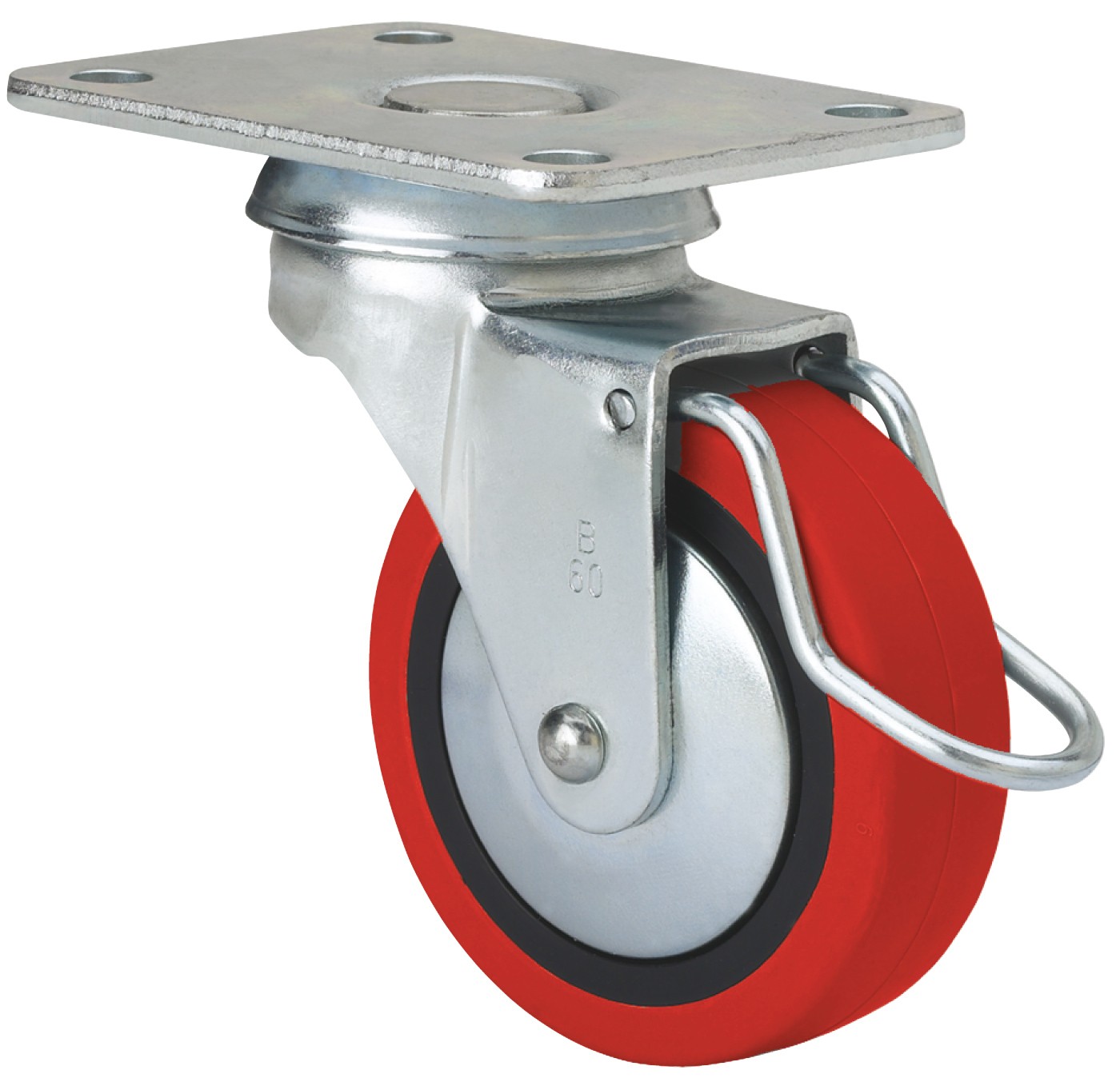 Ruedas rojas de poliuretano inyectado blando especialmente indicado para soportar cargas hasta 40 Kg.
