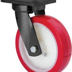 Ruedas con núcleo de nylon blanco y banda de poliuretano rojo dureza 90-95º shore A. Tracción mecánica. Especialmente indicada para soportar altas cargas de hasta 600 Kg.