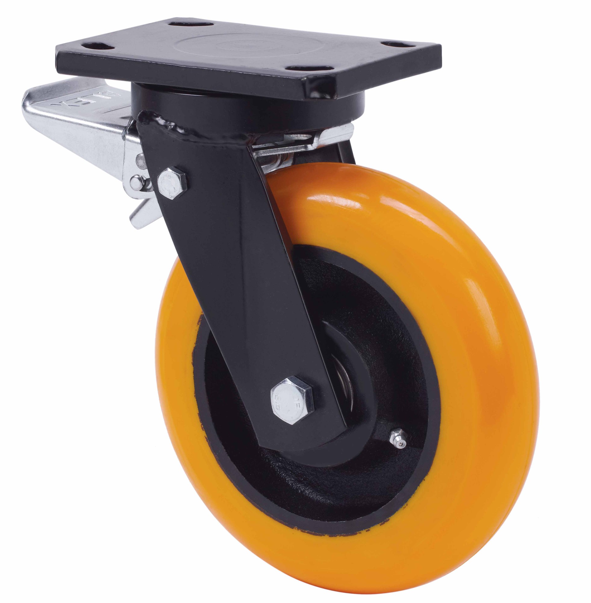 Ruedas con núcleo de acero y banda de poliuretano fundido con dureza de 95˚ shore A con banda de rodadura en forma balona, especialmente indicada para soportar altas cargas hasta 800 Kg.