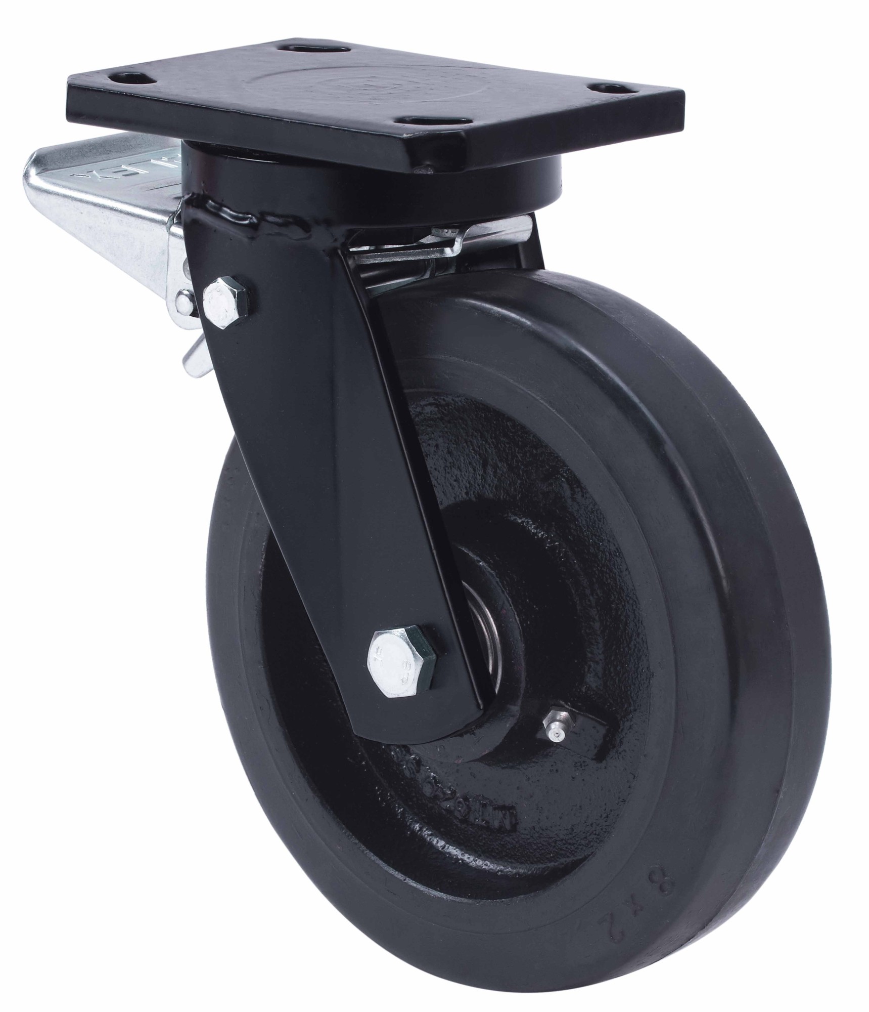 Ruedas con núcleo de acero y banda de goma negra natural. Especialmente indicada para soportar altas cargas de hasta 850 Kg.