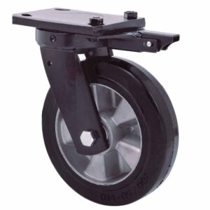 Ruedas connúcleo de aluminio y banda de goma negra elástica con una dureza 70˚ shore A. Especialmente indicada para soportar altas cargas hasta 500 Kg.