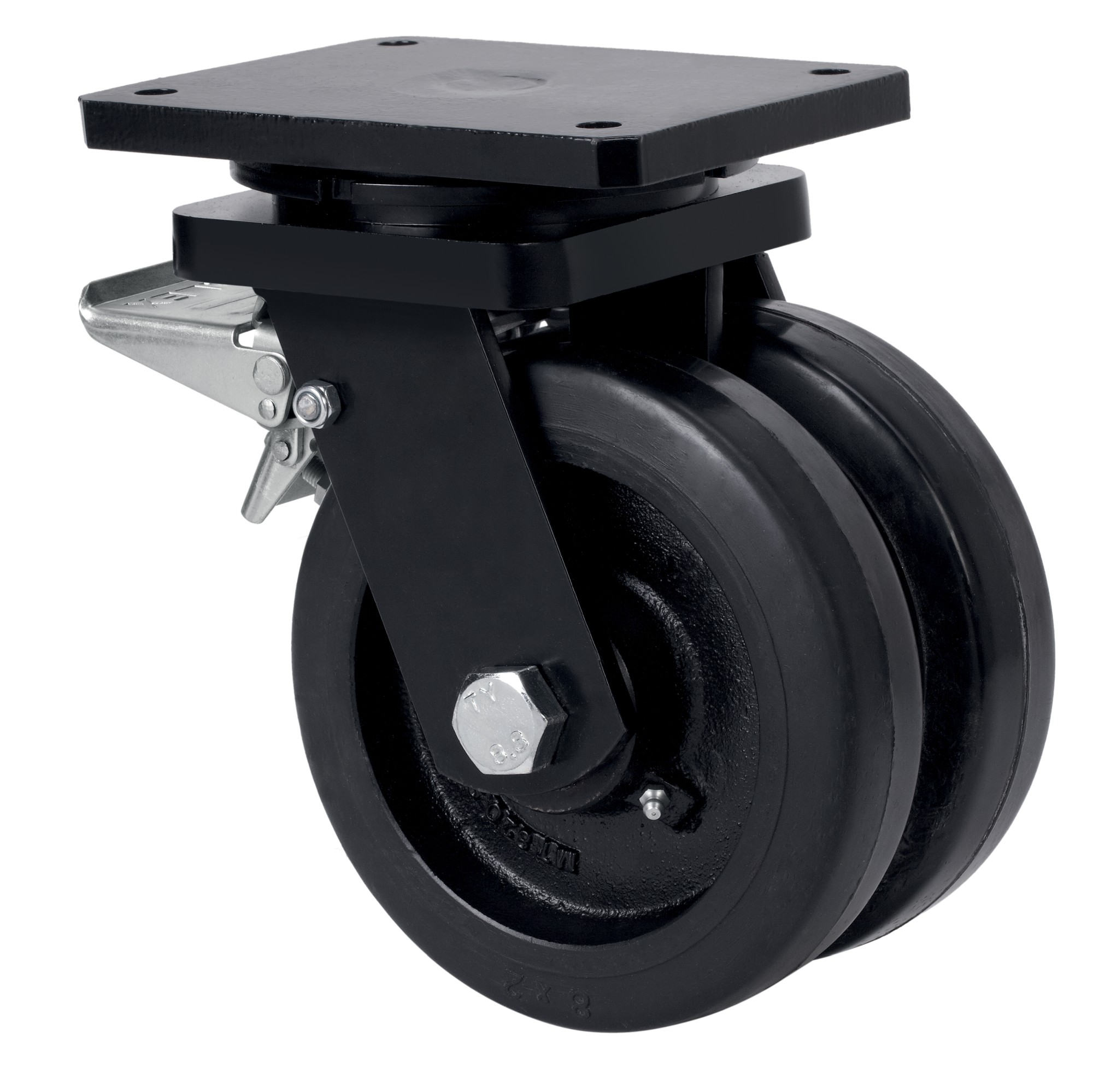 Rueda doble con núcleo de acero y banda de goma negra natura. Especialmente indicada para soportar altas cargas de hasta 1.400 Kg.