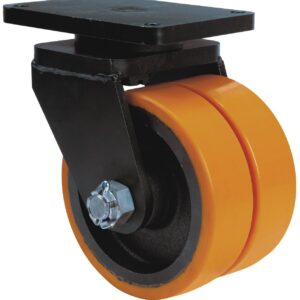 Rueda doble con núcleo de acero y banda de poliuretano fundido con dureza de 95º shoreA, especialmente indicada para soportar altas cargas hasta 4.000Kg.