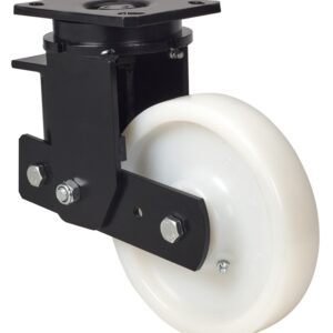 Ruedas de nylon extrafuertes, especialmente indicada para soportar altas cargas hasta 1.000Kg. Con soporte de suspensión elástica mediante incorporación de muelle muy resistente para absorber golpes, choques y desniveles. Recorrido de suspensión hasta 25mm., ideal en suelos irregulares donde su amortiguación actúa.