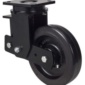 Ruedas con núcleo de acero y banda de goma negra natura. Especialmente indicada para soportar altas cargas de hasta 750 Kg. Con soporte de suspensión elástica mediante incorporación de muelle muy resistente para absorber golpes, choques y desniveles. Recorrido de suspensión hasta 25mm., ideal en suelos irregulares donde su amortiguación actúa.