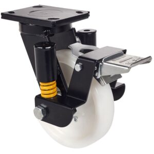 Ruedas de nylon extrafuertes, especialmente indicada para soportar altas cargas hasta 1.250Kg.Con soporte de suspensión elástica mediante incorporación de muelle muy resistente, ideal en suelos irregulares donde su amortiguación actúa.