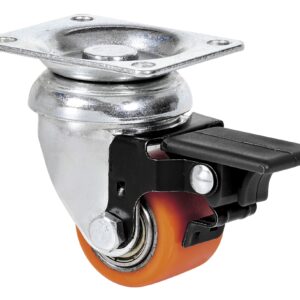 Ruedas con núcleo metálico y banda de poliuretano vulcanizado con una dureza 95˚ shore A. Especialmente indicada para soportar cargas hasta 100 Kg con mínima altura.