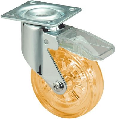 Aro con banda de rodadura de poliuretano y núcleo de policarbonato en colores transparentes.
