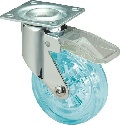 Aro con banda de rodadura de poliuretano y núcleo de policarbonato en colores transparentes.