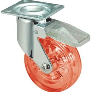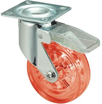 Aro con banda de rodadura de poliuretano y núcleo de policarbonato en colores transparentes.