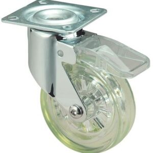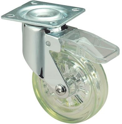 Aro con banda de rodadura de poliuretano y núcleo de policarbonato en colores transparentes.