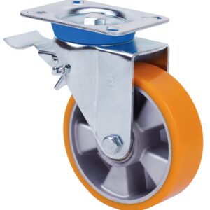 Ruedas con núcleo de aluminio y banda de poliuretano con dureza 95º shoreA. Especialmente indicada para soportar altas cargas de hasta 800 Kg.