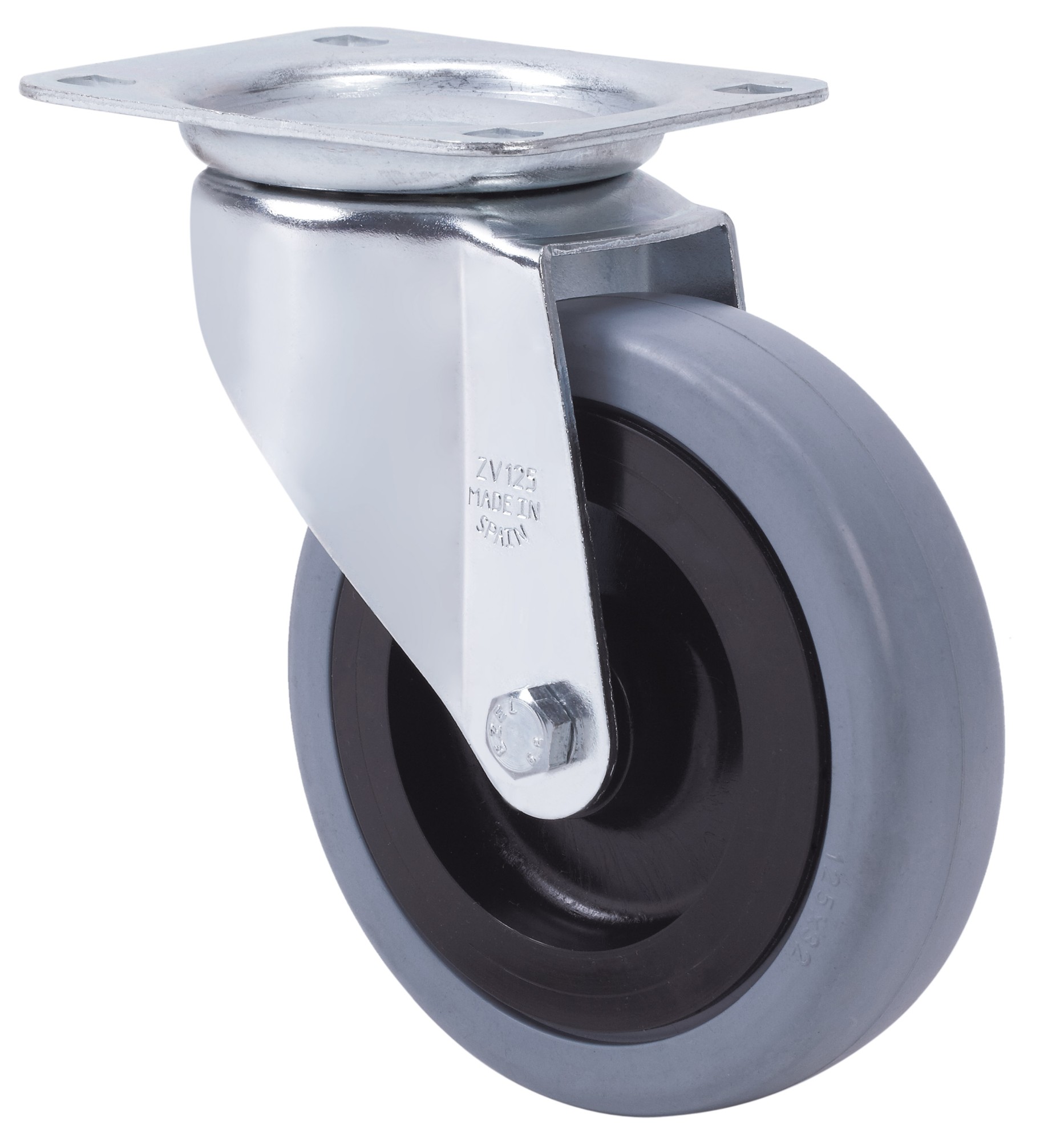 Ruedas de goma gris natural. Especialmente indicada para soportar cargas hasta 135 Kg.