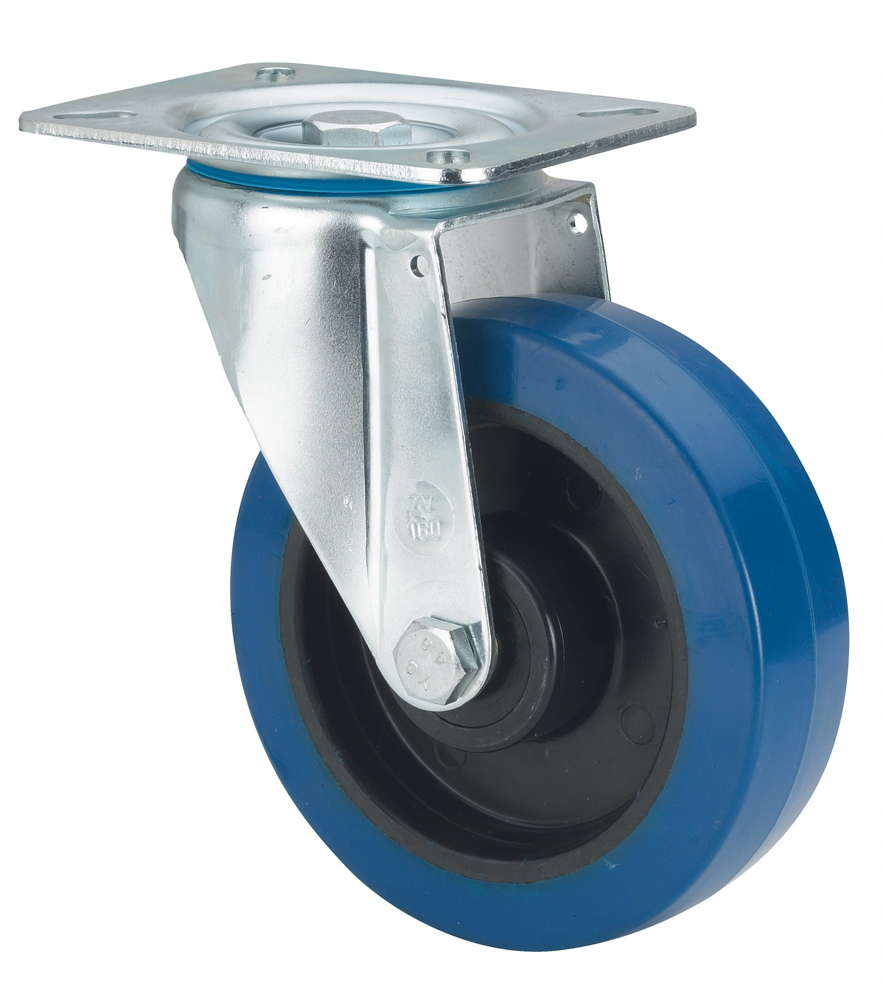 Ruedas de goma elástica azul. Especialmente indicada para soportar cargas hasta 400 Kg.