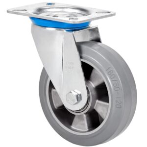 Ruedas de núcleo de aluminio con banda de goma elástica gris con una dureza 70˚ shore A. Especialmente indicada para soportar cargas hasta 450 Kg.