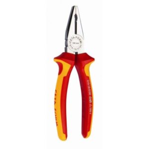 Este alicate se caracteriza por su cabeza cromada, lo que le otorga una mayor resistencia a la corrosión, y su mango bimateria, que proporciona un agarre cómodo y antideslizante. Además, cuenta con aislamiento eléctrico para garantizar la seguridad del usuario al trabajar con corriente eléctrica.