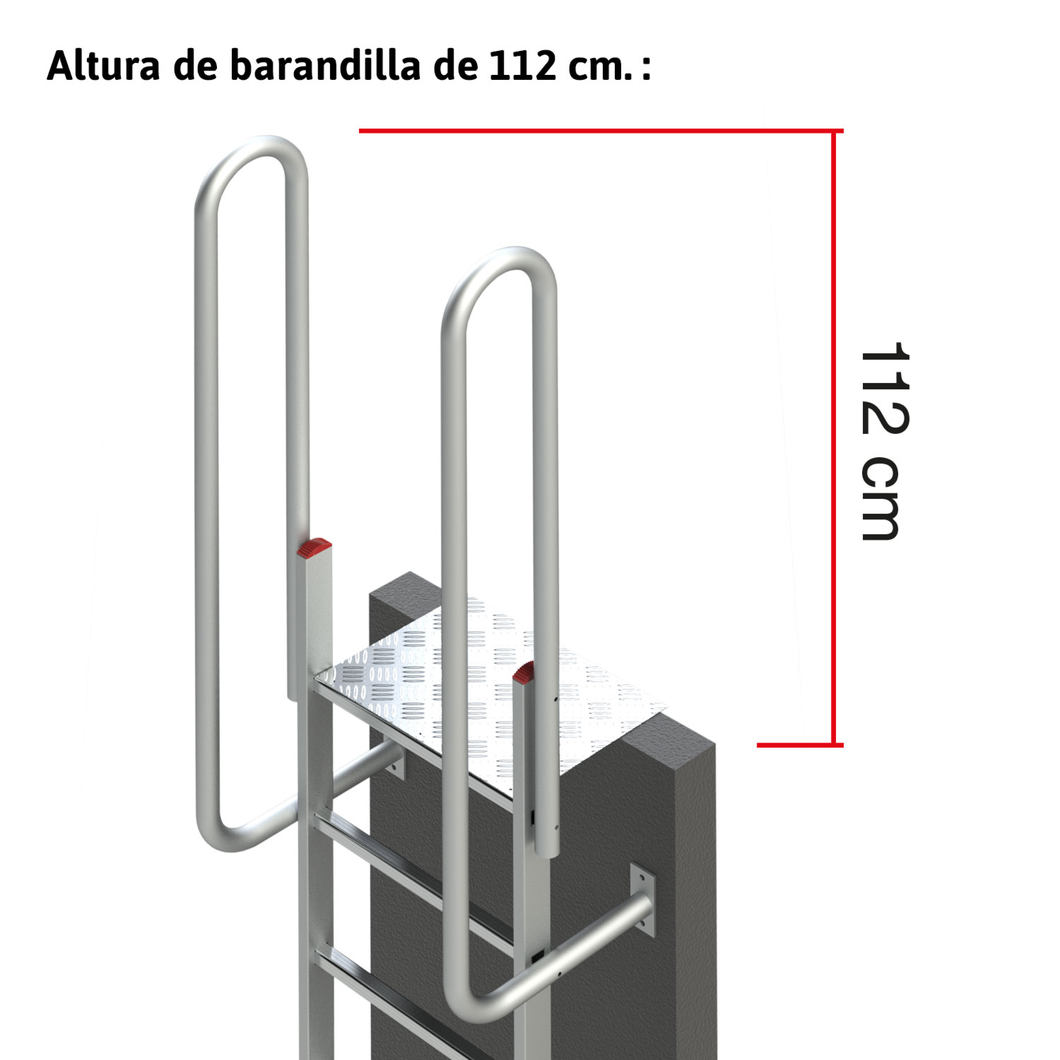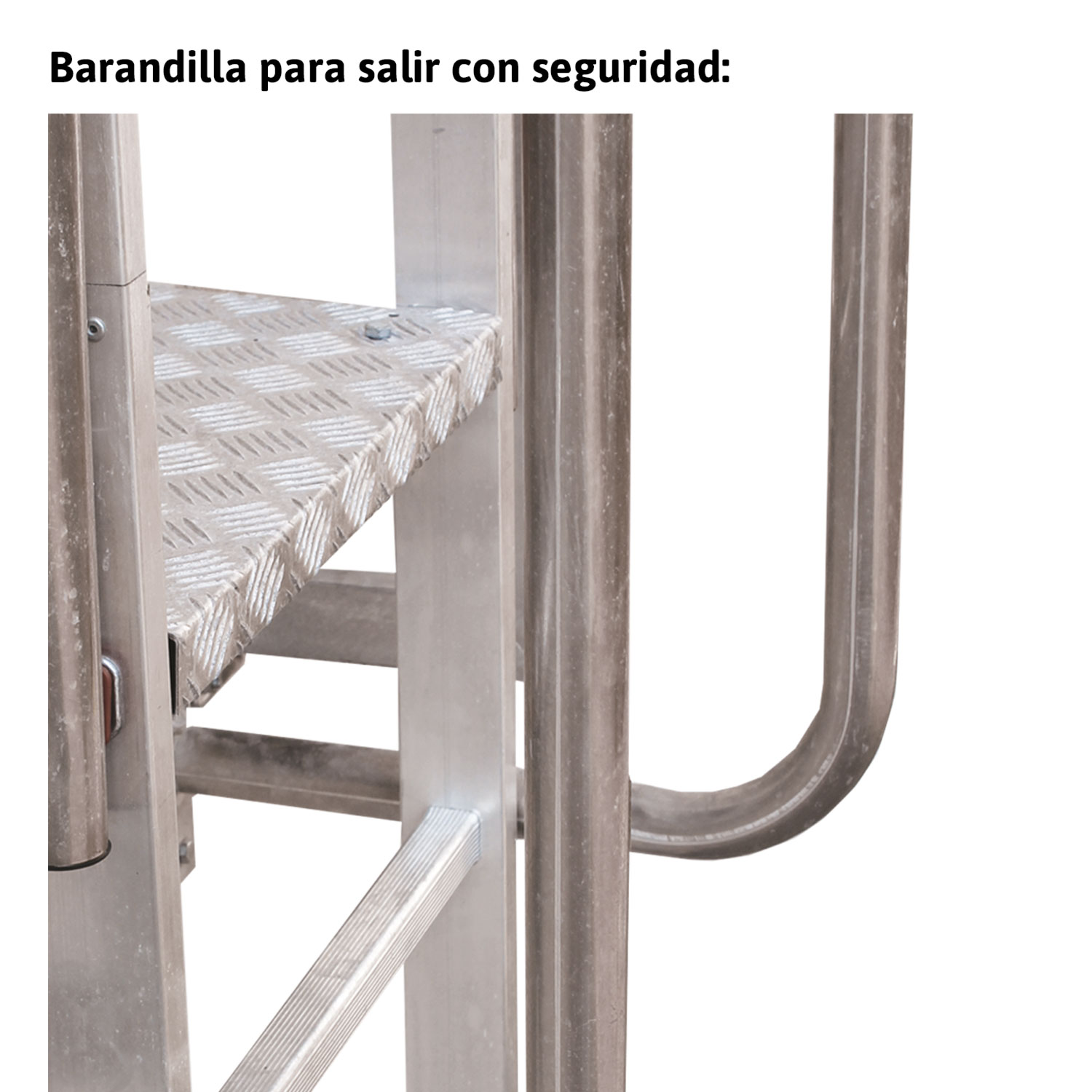 Barandilla de 112 cm de altura posicionada en la parte de arriba para salir con seguridad.