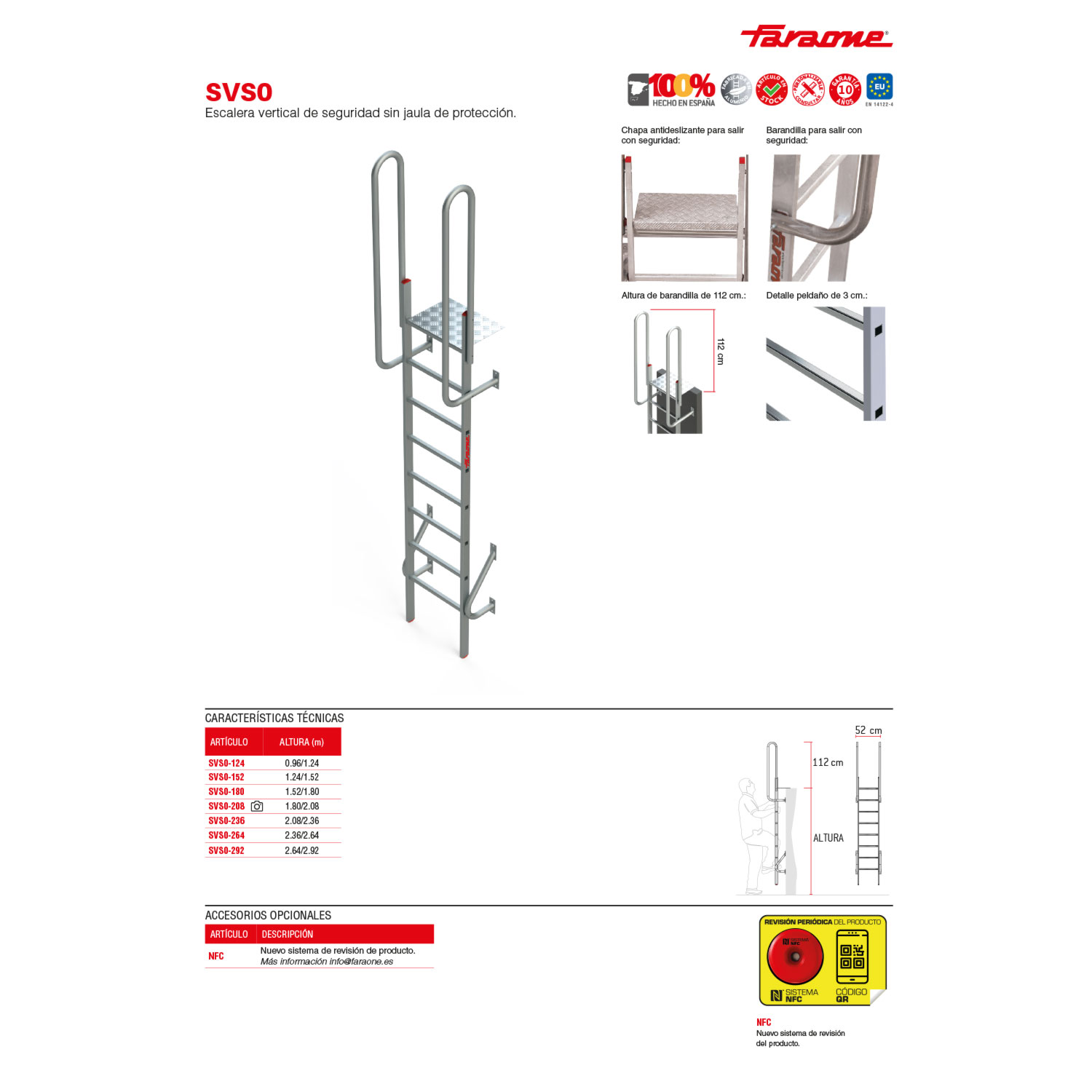 Este producto cumple con la normativa europea EN 14122-4 y se entrega junto con el certificado de conformidad.