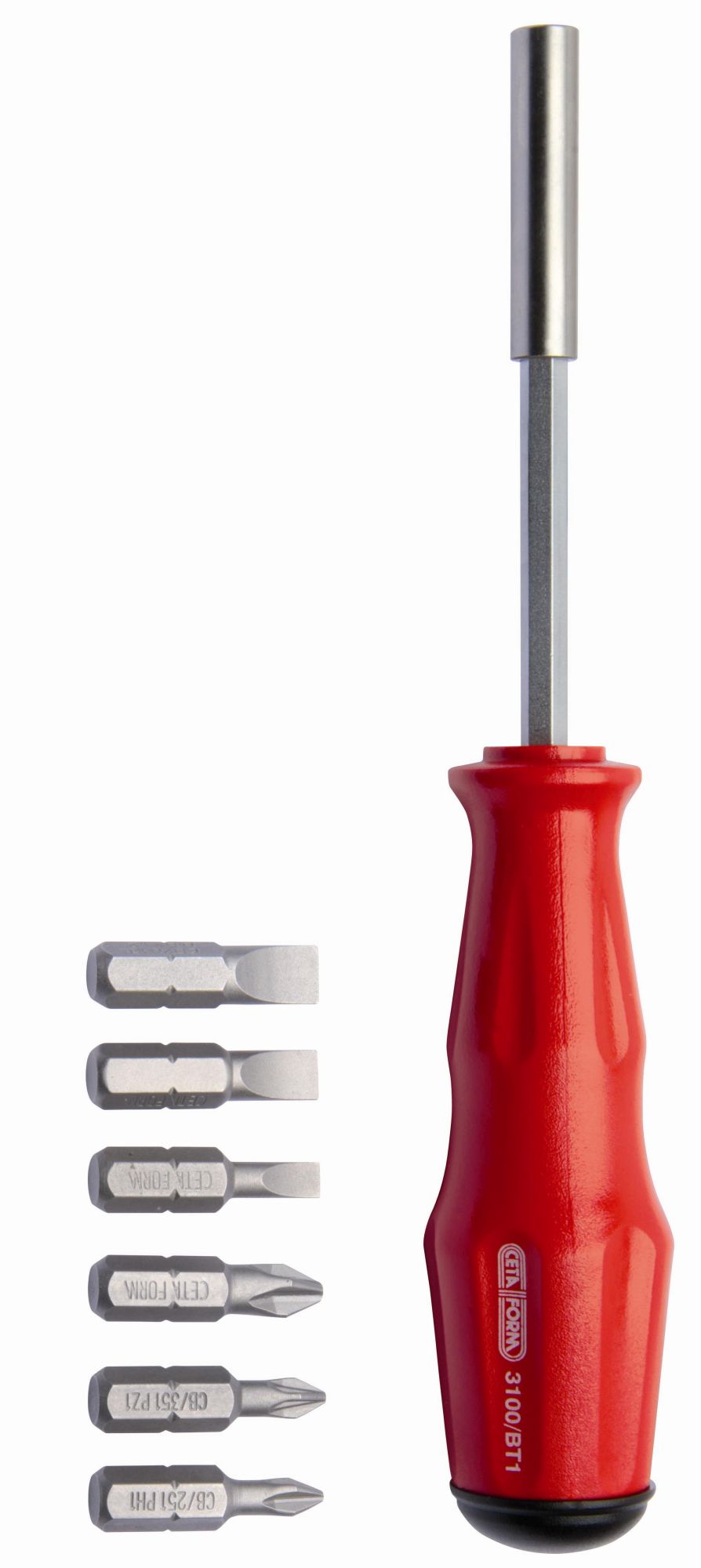 Consiste en un mango ergonómico que cuenta con un portapuntas en su extremo, el cual posee propiedades magnéticas para sujetar firmemente las puntas de atornillar, brocas u otros accesorios compatibles.