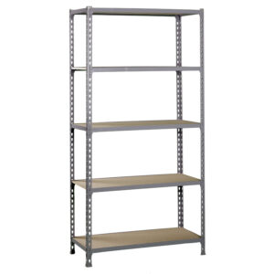 Estanter¡a metálica sin tornillos de color GRIS/MADERA con capacidad de carga por estante de 150 kg. El n£mero de estantes es 5 y las medidas (alto x ancho x fondo) son 1800x900x300 mm. Tiene estantes de aglomerado de 12 mm. Producto espa¤ol de calidad europea, podrás encontrar las instrucciones de montaje en su interior o en este enlace: https://www.youtube.com/watch?v=J8R6iEhkKA0&t=3s. Medidas en uso del producto: 1787x910x310 mm