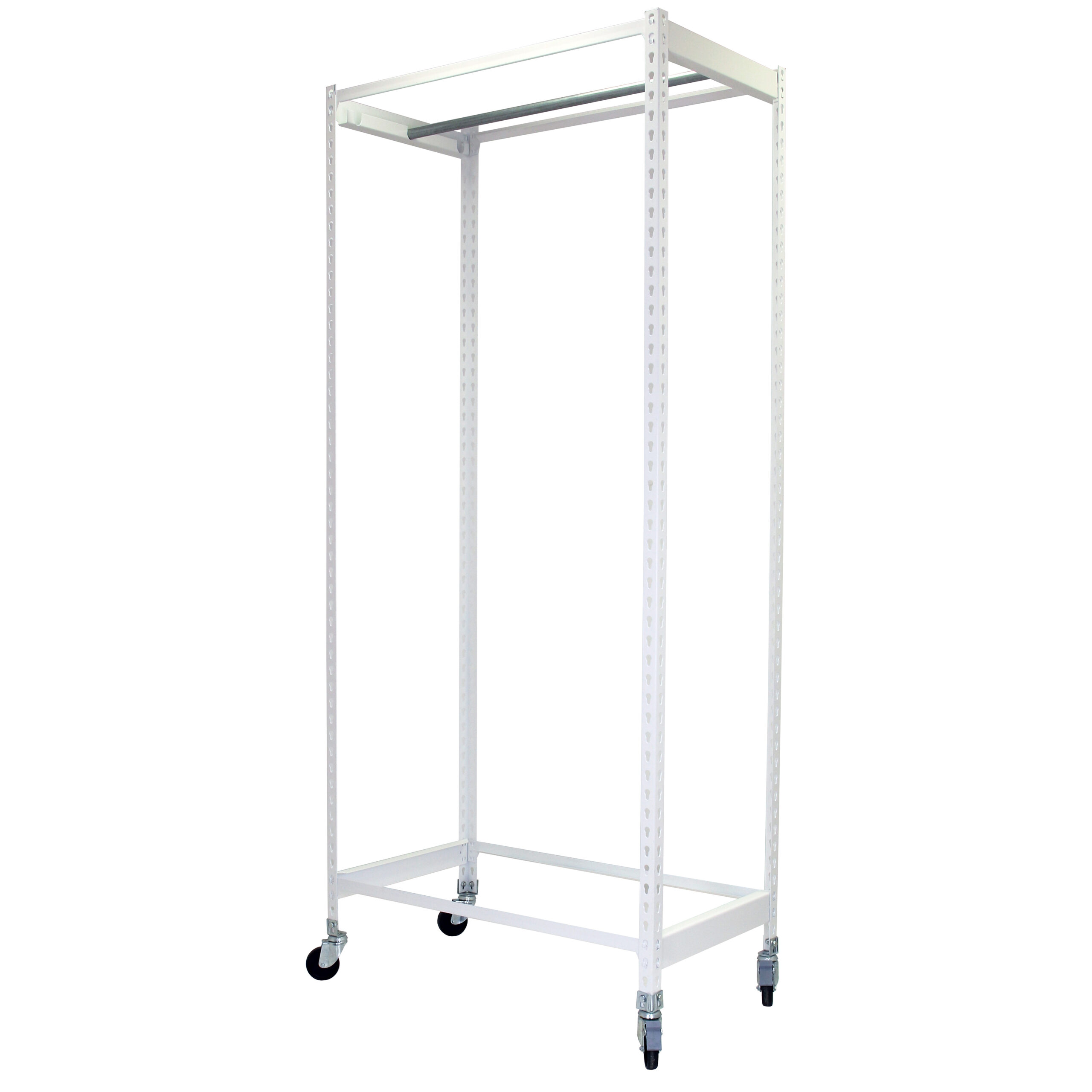 Estanteria metalica para prenda colgada de color blanco.Con ruedas.El numero de colgadores por modulo es de 1.Tiene una capacidad de carga por estante de 25 kg y una capacidad total de 25 kgs.Con unas medidas en mm de 1500x1200x500.Fabricada en Espa¤a por Simonrack y se monta rápido siguiendo las instrucciones