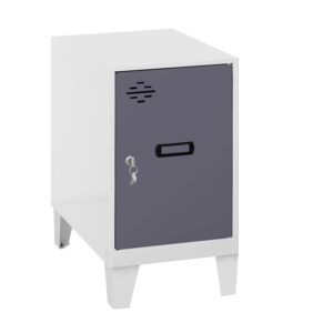 Casillero metálico mini con patas de color BLANCO y las puertas ANTRACITA. Las dimensiones son575x300x500 mm. Se entrega montado e incluye un respiradero para mantener el interior ventilado, una cerradura de cilindro con dos llaves que se puede cambiar bajo pedido por cualquiera de las otras cerraduras de Simonrack y un etiquetero para aportar informaci¢n acerca de su uso o su propiedad. Este casillero mini se puede acoplar fácilmente a otro casillero Simonrack del mismo tama¤o o superior, del mismo o distinto color, adaptándose perfectamente al espacio que necesite el usuario, comb¡nalos como quieras. Ideal para poner debajo de la mesa, en el ba¤o para guardar toallas, en un vestuario etc.