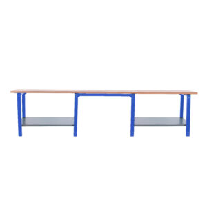 Banco de trabajo con tornillos y encimera de haya laminada, y cuentan con estantes inferiores que tienen una capacidad de carga de 300 kgs aportándole mucha resistencia al banco de trabajo. La encimera de haya laminada de 32 mm de espesor que aguanta mejor el impacto y los golpes. Es de color AZUL. Las dimensiones de este banco de trabajo son: 865x3000x750 mm. La encimera principal tiene una capacidad de carga en estático de 1000 kgs de forma uniformemente repartida por la superficie. Está fabricado en Espa¤a y se monta fácil siguiendo las instrucciones.