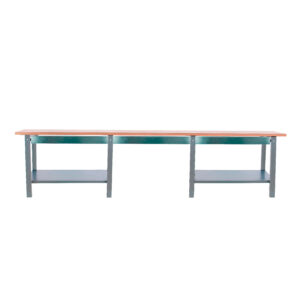 Banco de trabajo con tornillos y encimera de haya laminada, y cuentan con estantes inferiores que tienen una capacidad de carga de 300 kgs aportándole mucha resistencia al banco de trabajo. Cuenta con 3 cajones metálicos con gu¡as telesc¢picas para una mayor facilidad de uso. La encimera de haya laminada de 32 mm de espesor que aguanta mejor el impacto y los golpes. Es de color GRIS. Las dimensiones de este banco de trabajo son: 865x3000x750 mm. La encimera principal tiene una capacidad de carga en estático de 1000 kgs de forma uniformemente repartida por la superficie. Está fabricado en Espa¤a y se monta fácil siguiendo las instrucciones.